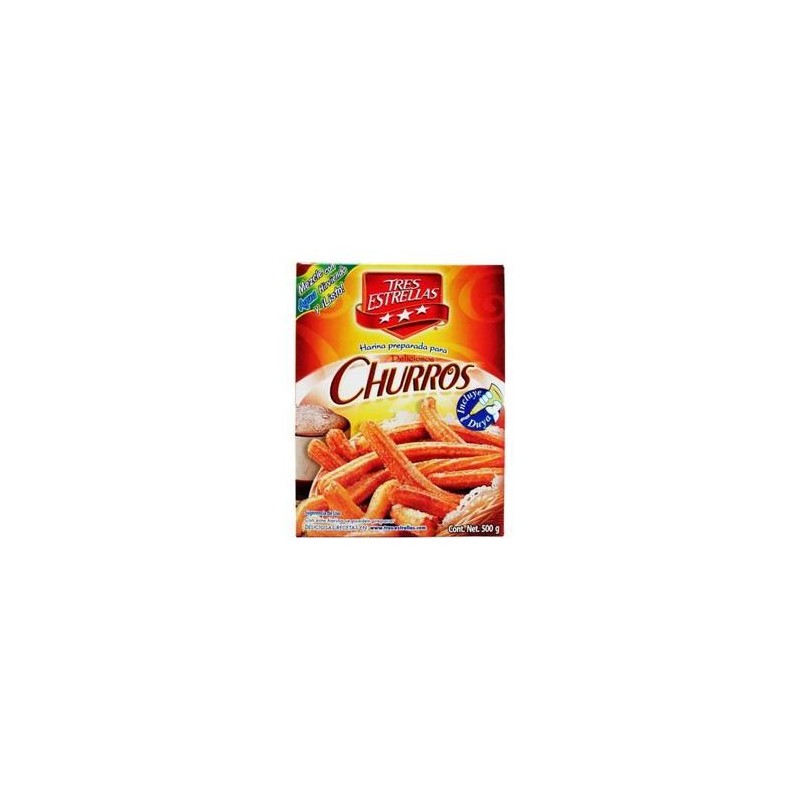 La Moderna Media Caja Harina para Churros Tres Estrellas 500G/6P Media Caja Harina para Churros Tres Estrellas 500 grs 6 piezas La Moderna Prueba la nueva harina para churros es practica y rica. Les gustara a toda tu familia.