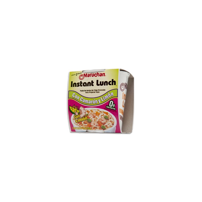 Maruchan Caja sopa Maruchan sabor camarón y limón 12P/64G Sopa Maruchan de sabor camarón con limón en pack de 12 piezas de 64 grs. ¡Solo agrega agua caliente, espera 3 minutos y listo!
